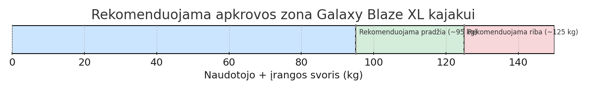 Pvz., naudotojui sveriant 100 kg ir turint ~25–30 kg įrangos – Blaze XL veiks idealiai.