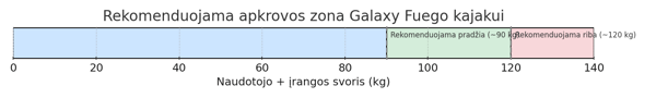 Pvz., naudotojui sveriant 95 kg su ~25–30 kg įrangos, Galaxy Fuego veiks idealiai.