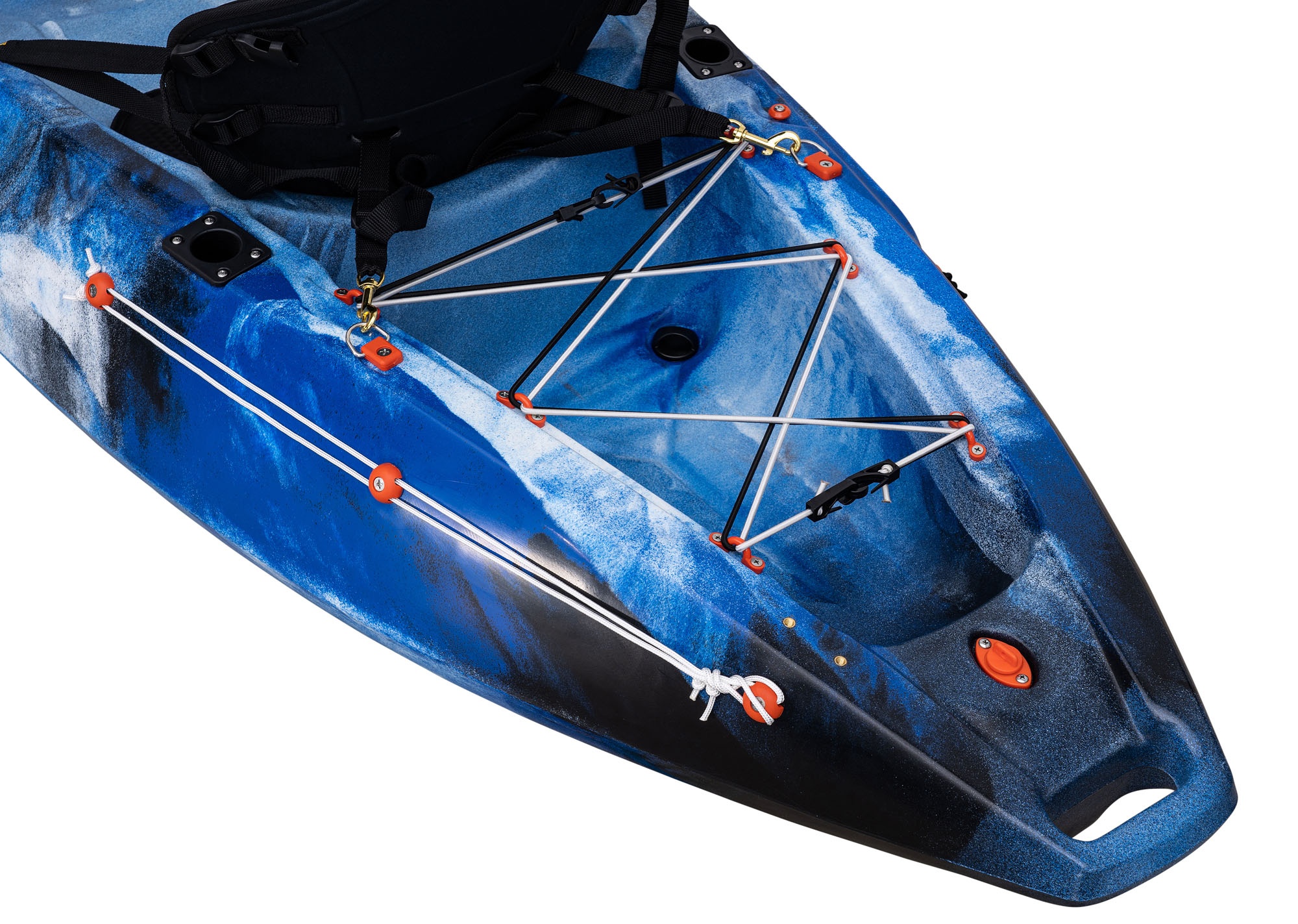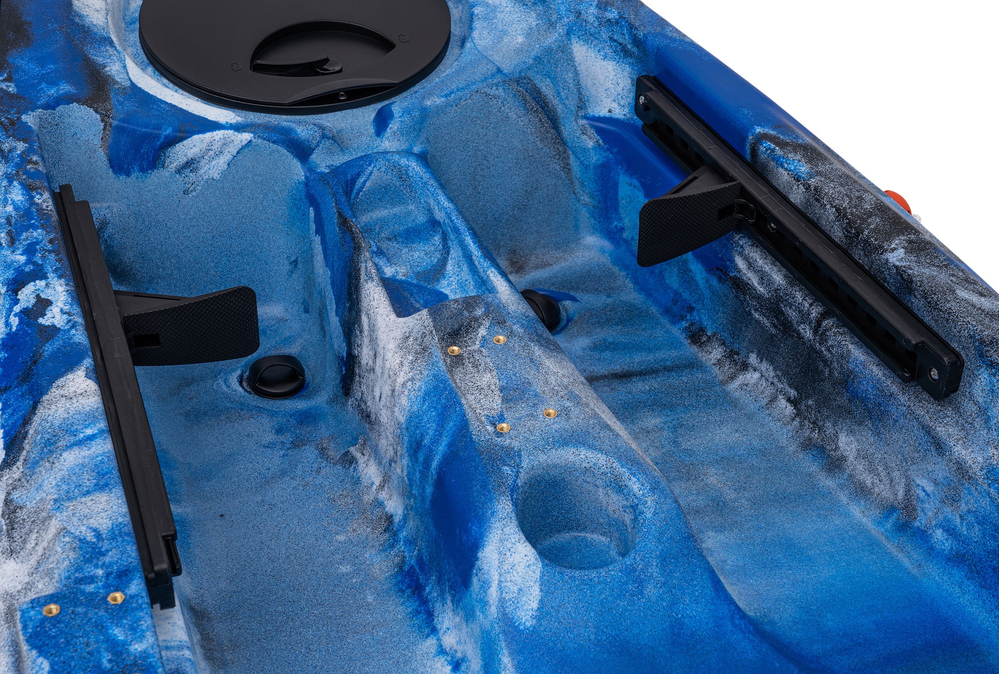 Railblaza Starport sistema – vario įdėklai priekyje ir gale leidžia montuoti papildomus priedus (echoskanerius, kameras, papildomus laikiklus, saugos vėliavėles) be kajako gręžimo