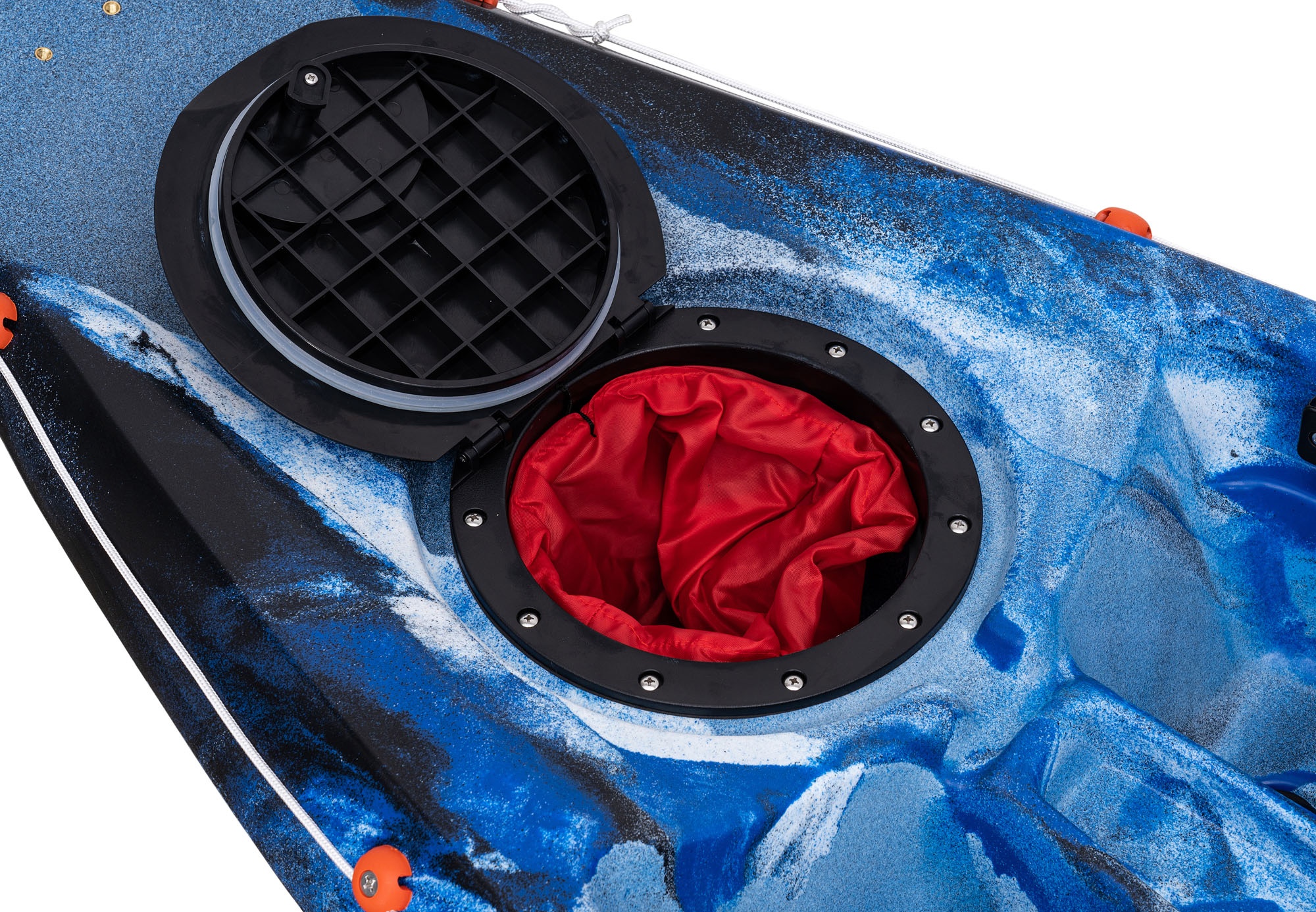 Galaxy Blaze XL išsiskiria ilgesniu 305 cm korpusu ir 80 cm pločiu, kuris užtikrina puikų stabilumo ir greičio derinį. Ilgesnis korpusas leidžia kajakui lengviau slydėti vandenyje, sumažinti pasipriešinimą ir pasiekti didesnį greitį mažesnėmis pastangomis. Tai ypač svarbu plaukiant su vaiku ar papildoma įranga – kajakas lieka lengvai valdomas ir efektyvus.