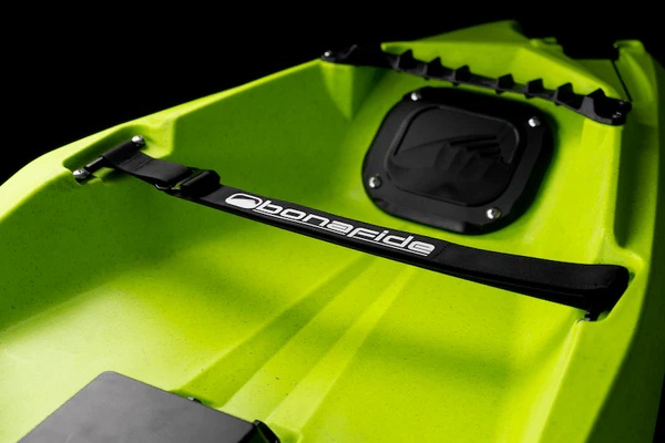 Priekyje integruotas Boss Strap meškerių ir irklo organizatorius. Boss Strap grioveliai leidžia lengvai organizuoti meškerių galiukus, o juosta pakankamai pakelta nuo denio, kad po ja būtų galima paslysti irklą greitam saugojimui. Žemiau Boss Strap rasite prieigos plokštelę, leidžiančią patekti į korpuso vidų apšvietimo, laidų ir montavimo tikslais. Analogiška plokštelė yra ir gale.