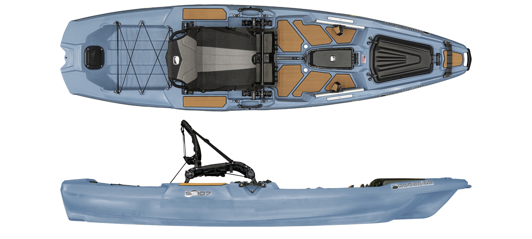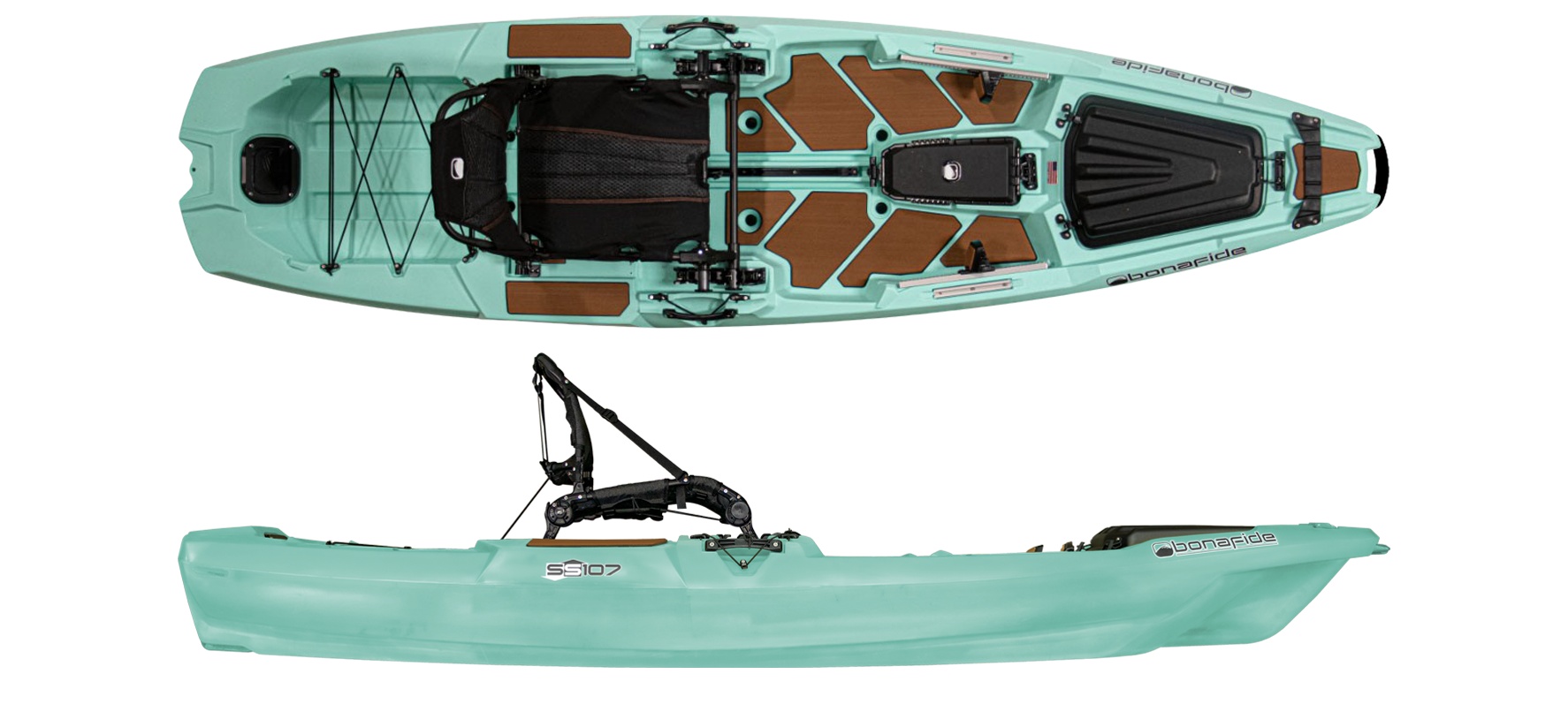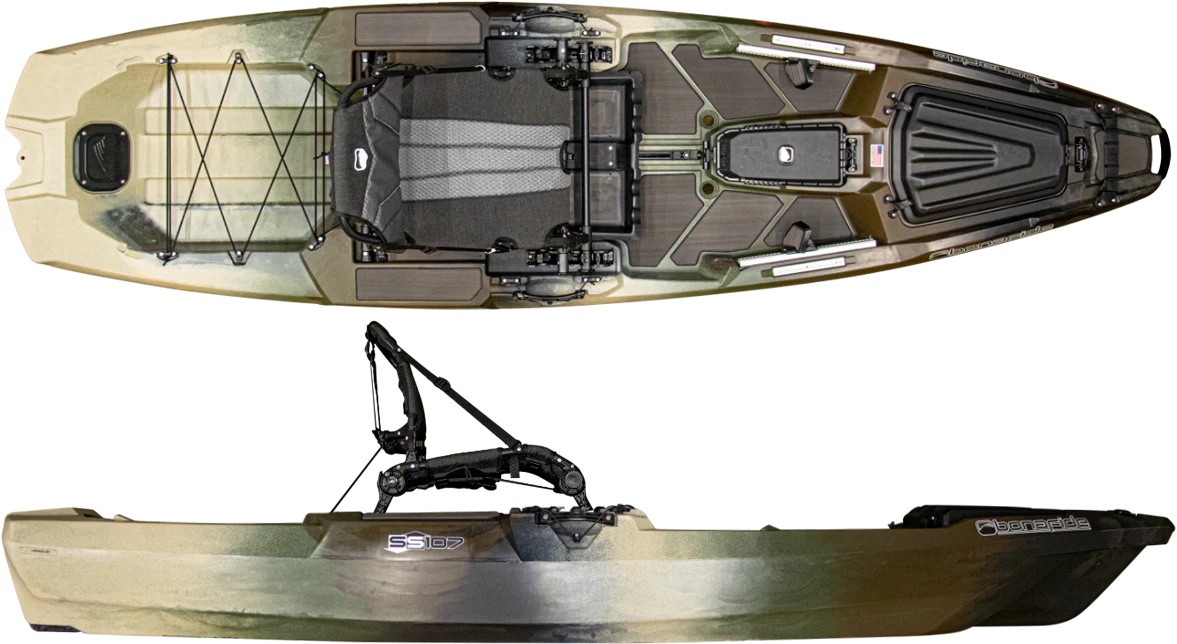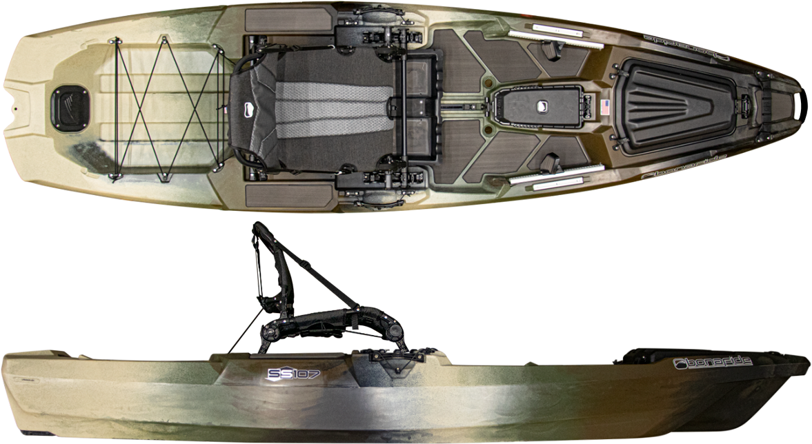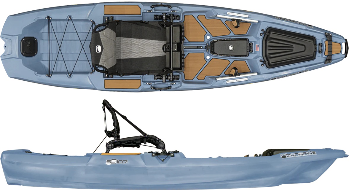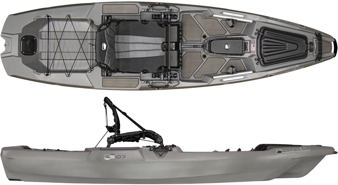 Bonafide SS107 – kompaktiškas, bet galingas žvejybinis kajakas su „Ultimate Fishability™” koncepcija, 425 lbs (193 kg) apkrova ir patobulinta „HiRise™” sėdyne. Puikiai tinka mobiliems žvejams, kuriems reikia aukščiausios klasės funkcijų mažame formate.