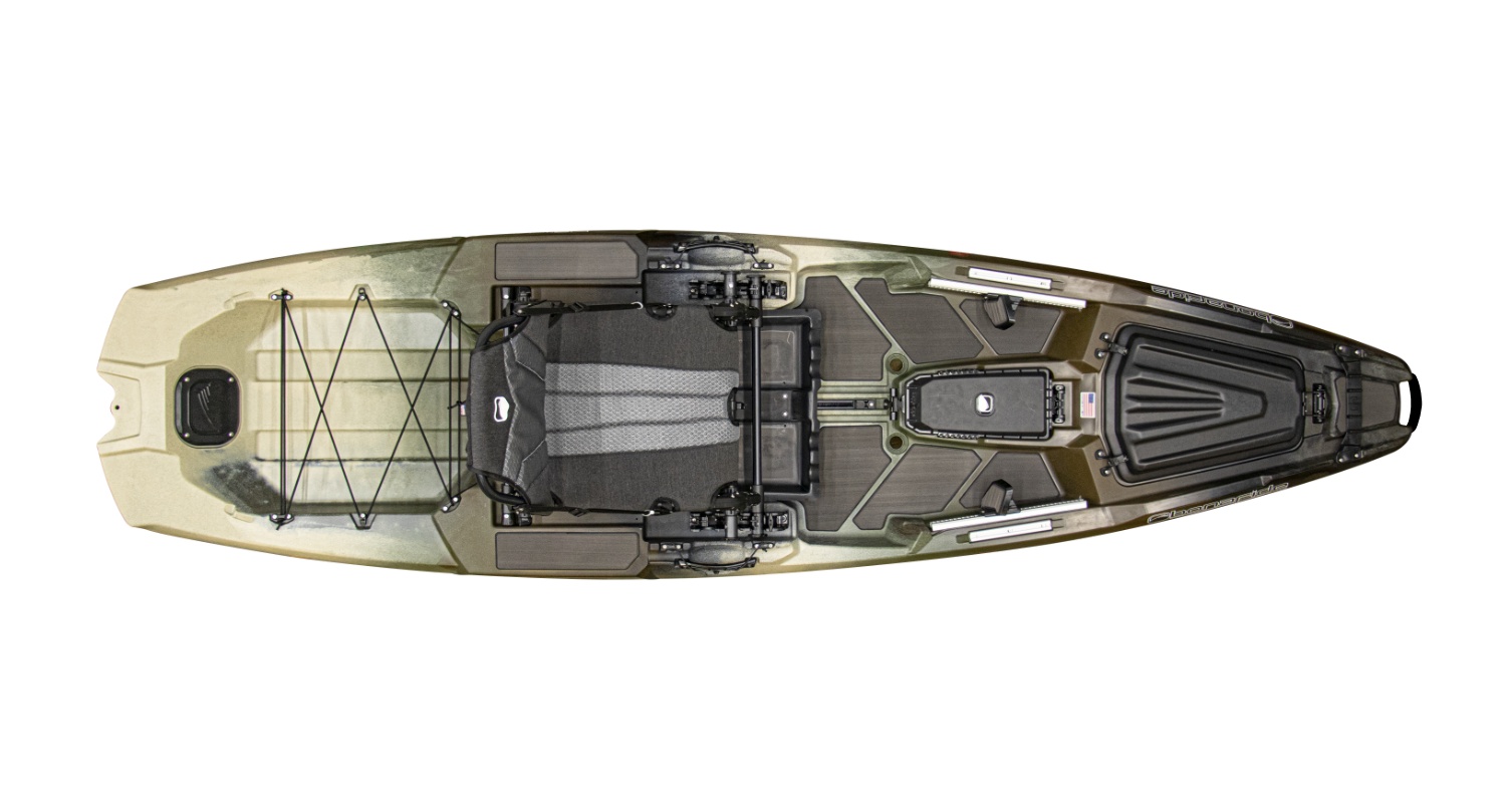 Patentuota „HiRise™" aukšta sėdynė suteikia puikų vaizdą ir mažina apatinės nugaros dalies apkrovą per ilgas žvejybos sesijas. Sėdynę galima nuleisti ant „SeatRack™" rėmo ir sulenkti į žemesnę paddingavimo poziciją – idealiai tinka ilgesniam irklavimui arba banguotesniuose vandenyse.
