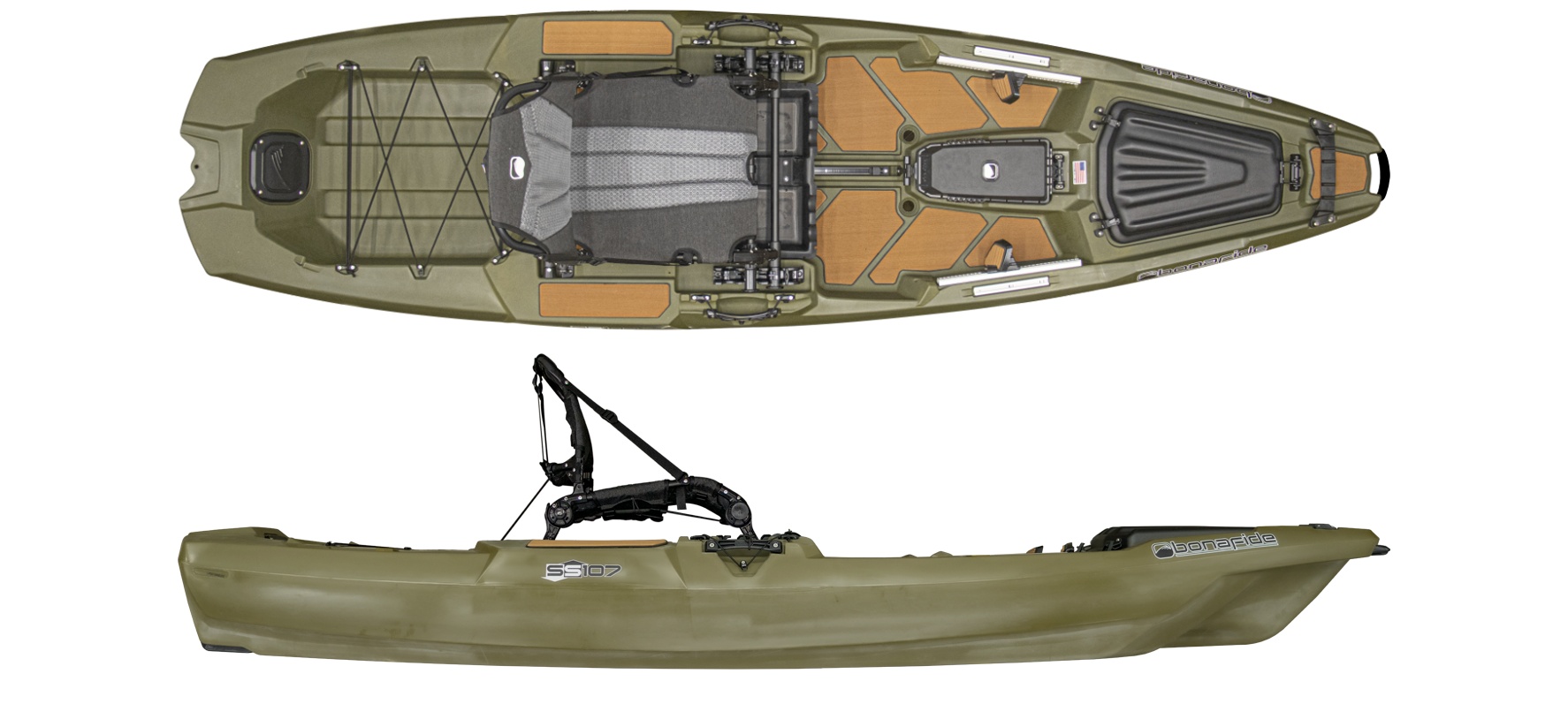 Bonafide SS107 – tai kompaktiškas žvejybinis kajakas, sukurtas remiantis „Ultimate Fishability™" koncepcija. Nepaisant savo 10'7" ilgio, šis kajakas talpina visas aukščiausios klasės žvejybos funkcijas: „HiRise™" sėdynę, „YakAttack GearTrac™" įrangos bėgelius ir 425 lbs apkrovą. Platūs 34.5" bortai suteikia stovėjimo stabilumą, kurį paprastai randa tik didesnėse valtyse. Idealus žvejams, kurie vertina mobilumą neaukodami funkcionalumo.