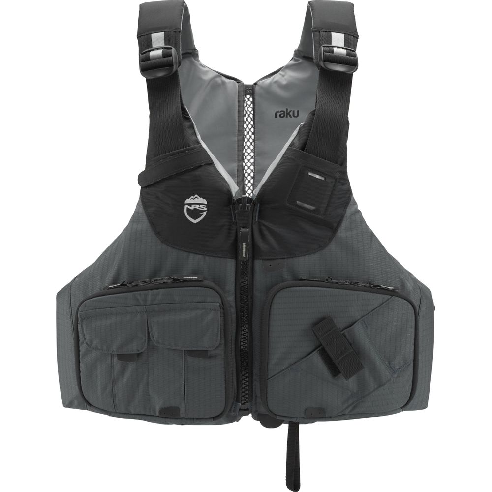 NRS Raku Fishing PFD – Closeout — specializuota žvejybinė gelbėjimosi liemėnė su 5 kišenėmis ir 70N plūdrumu aktyviai žvejybai ant vandens.
