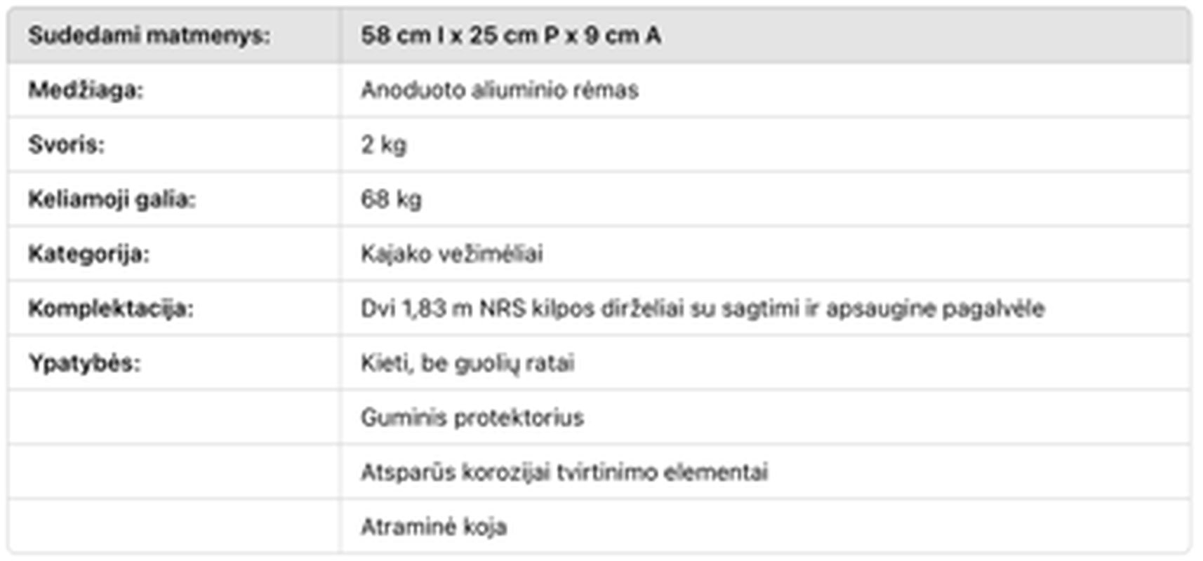 ✔ Lengvas ir patvarus – anoduoto aliuminio rėmas užtikrina tvirtumą ir ilgaamžiškumą.