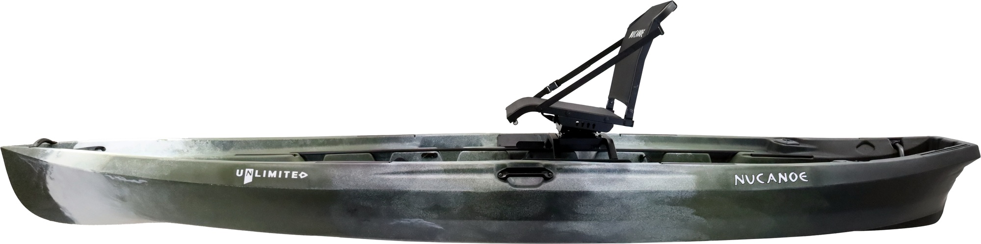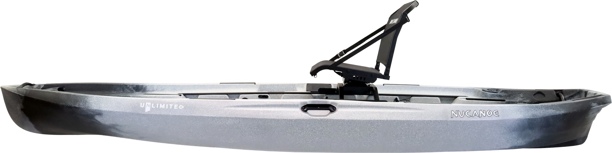 NuCanoe Unlimited išsiskiria ilgesniu 381 cm korpusu ir ultra stabiliu 104 cm pločiu. Šis dydis užtikrina unikalų balansą tarp greičio, stabilumo ir talpos – kajakas greitai slenka ilgesniais atstumais, tačiau išlaiko maksimalų stabilumą stovinčiai žvejybai ar medžioklei.