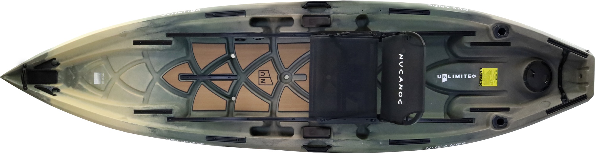 NuCanoe Unlimited – tai premium žvejybinis ir medžioklės kajakas, pagamintas JAV (Fletcher, Šiaurės Karolina), sukurtas dirbti bet kokiomis sąlygomis su maksimaliomis komplektavimo galimybėmis. Atviras, tvirtas denis, greitas ir stabilus korpusus, Plug & Play paruoštis elektriniams varikliams (EPS/Newport/Torqeedo) ir priekiniams (bow-mount) varikliams bei šiuolaikinei elektronikai. 381 cm ilgis ir 104 cm plotis užtikrina puikų balansą tarp greičio, stabilumo ir talpos.