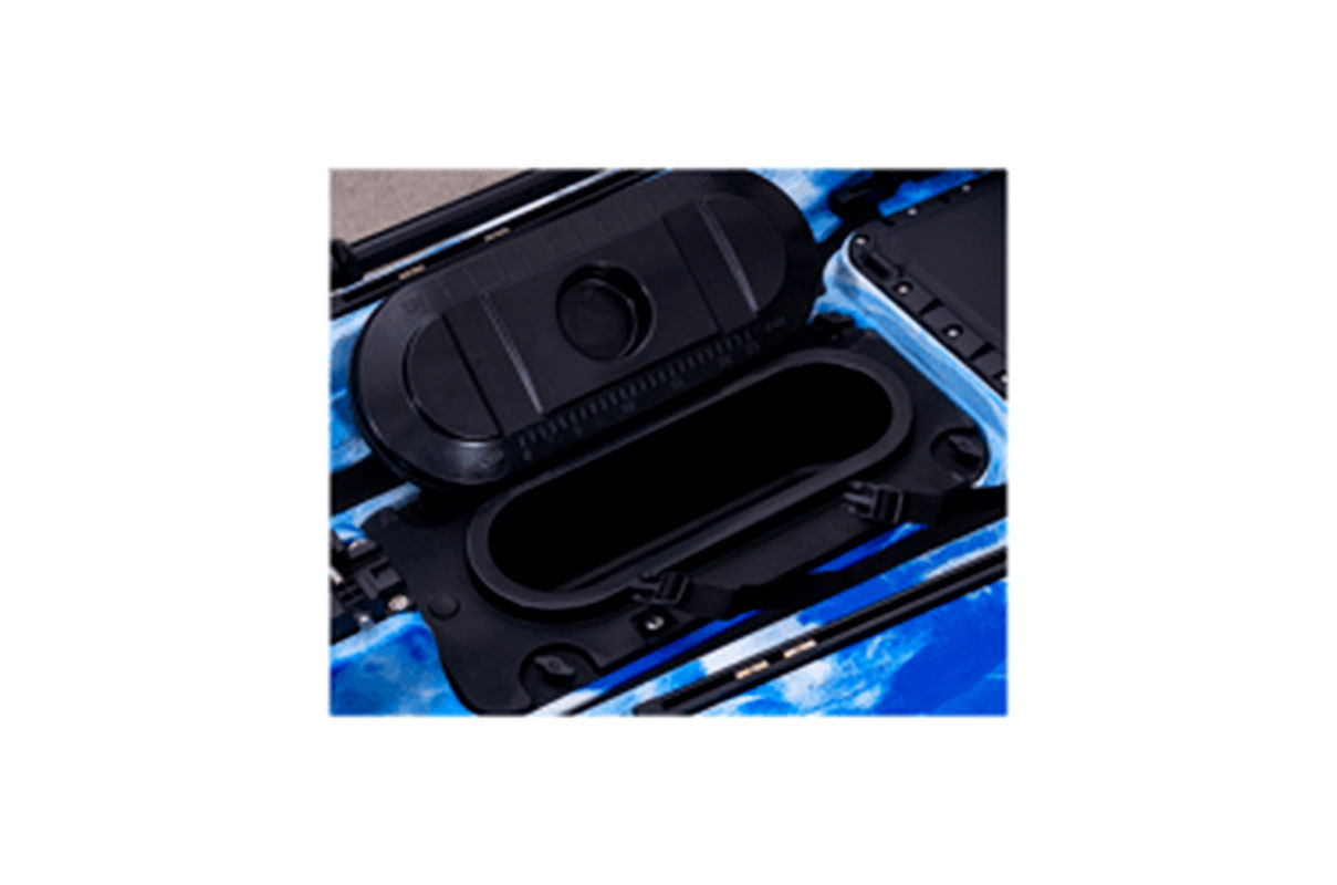 Kai norite plaukti naudodami tik irklą, pedalų angą galite uždengti specialiai tam pritaikytu dangčiu, kuris taip pat gali būti naudojamas kaip daiktų saugykla.