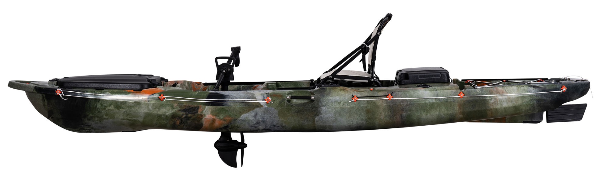Cyclone Pedal Drive sistema – pagaminta iš jūrinio aliuminio lydinių, užtikrina ilgaamžiškumą ir atsparumą druskos vandeniui. 1:10.5 pavaros santykis leidžia pasiekti optimalų greitį be didelio fizinio krūvio, o 29.8 cm propeleris užtikrina tylų ir efektyvų judėjimą. Pedalai veikia abiem kryptimis – galite greitai pasitraukti iš seklios vietos ar tiksliai priartėti prie žvejybos taško.