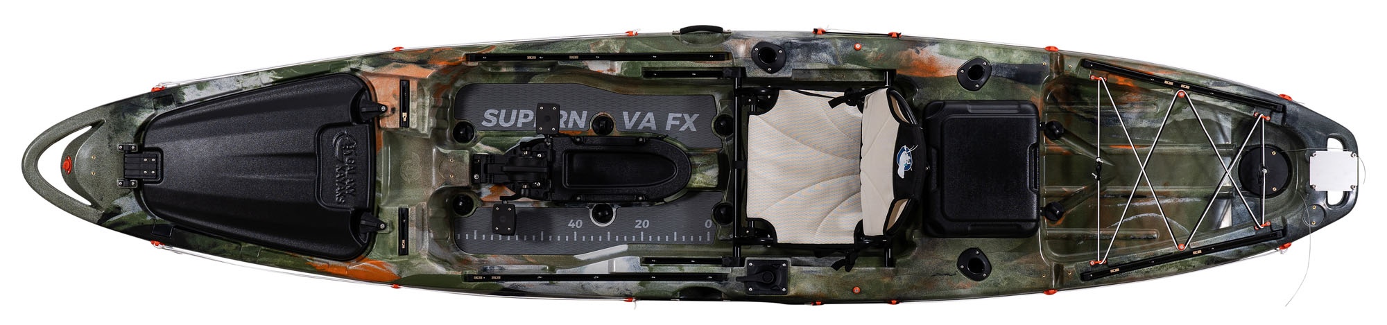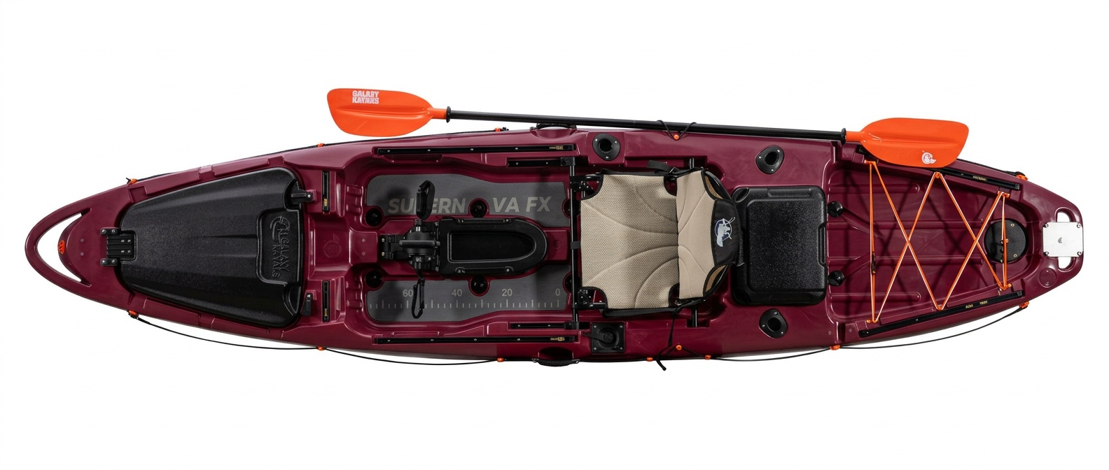 Galaxy Supernova FX – naujos kartos premium pedalinis kajakas, sukurtas profesionaliems žvejams, ieškantiems universalumo, stabilumo ir pažangiausių technologijų.