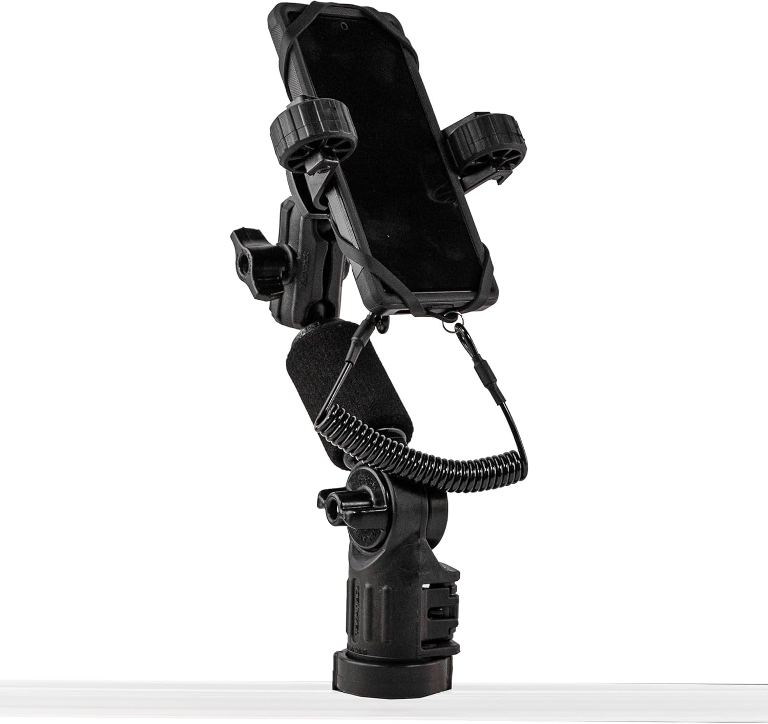YakAttack RotoGrip Phone Holder Pro – tai išmaniojo telefono laikiklis, sukurtas specialiai aktyviam poilsiui ir žvejybai ant vandens. Patentota RotoGrip technologija leidžia telefoną išimti arba įdėti vos vienu judesiu, net kai rankos šlapios arba užsiėmusios irklą.