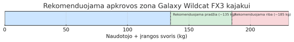Rekomenduojama naudotojo + įrangos zona: 135–185 kg